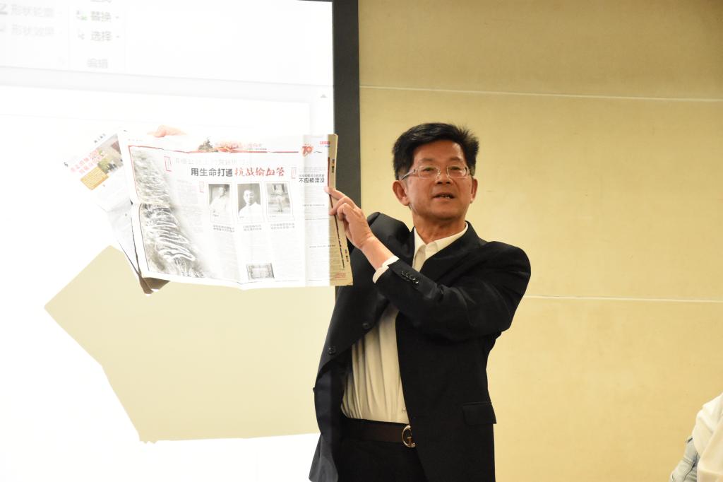 林少川教授从三个方面进行介绍,首先是对南洋华侨机工回国参战历史做了整体概述。林少川教授回顾南洋华侨机工国难当头、赤子功勋青史流芳的光荣历史,向全场演示了当年南侨机工克服万难从事滇缅公路的运输和汽车维修等工作;随后他和大家分享37年的采访经历,用质朴的语言讲述了南侨机工82载的沧桑,并播放了珍贵的采访影像资料,向大家展示了南侨技工最真实的心路历程和奋不顾身献身报国的伟岸形象。最后,他还向大家着重举例讲述了十几位南侨机工在国难当头之际,排除万难回国参战的感人至深故事,并阐述了南洋华侨机工历史意义和现实意义。讲座中,林教授慷慨激昂,用真挚的情感感染了现场的师生。他说,通过今天这场华侨史讲座,我们一起回顾南侨机工82年前“国难当头回国参战、赤子功勋青史流芳”的光荣历史,就是要学习并弘扬华侨华人与祖(籍)国“与祖国心连心同呼吸共命运”的伟大精神和“敢拼会赢、爱国爱乡”的华侨精神,立足当下,以自身的实际行动,紧密团结在以习近平同志为核心的党中央周围,进一步凝聚侨界力量,为实现中华民族伟大复兴的中国梦做贡献。