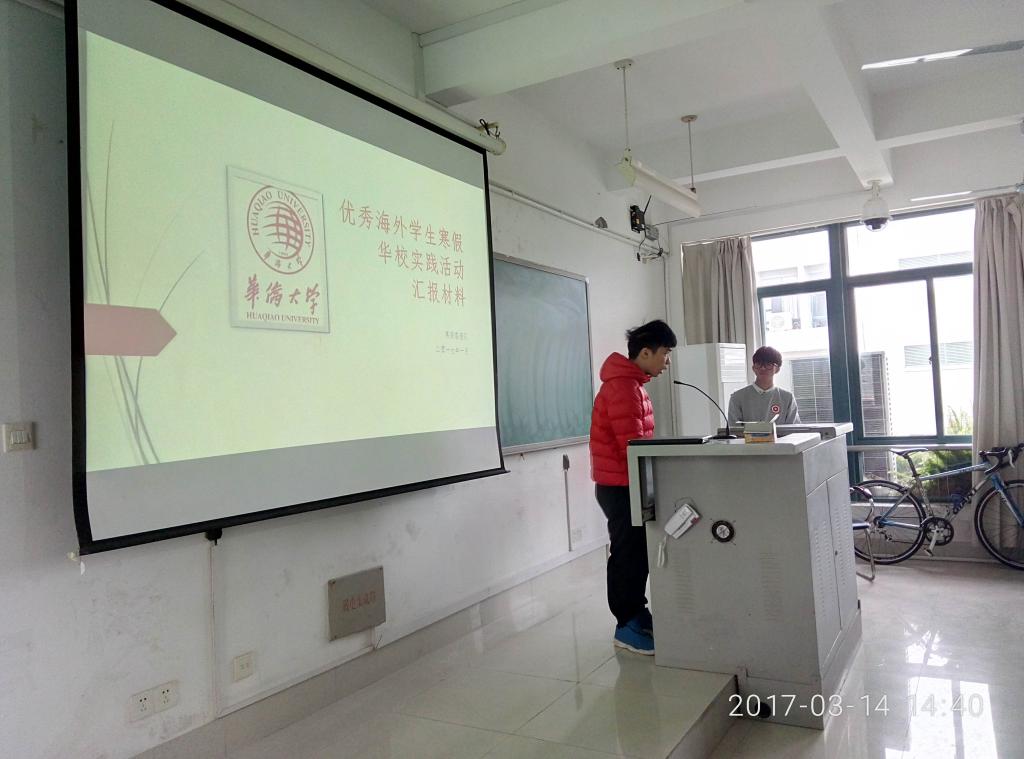 3月14日下午,学院在C2-403举行境外生寒假返回中学母校及华校实践成果汇报会,本次汇报会由院团委学生会境外生联络部举办,我院参加境外生寒假社会实践的全体成员出席汇报会,本次会议由辅导员张永强老师主持。